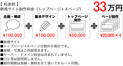 1ページの料金です。お客様にご用意頂いた原稿を元に制作致します。フォーム等のCGI、その他システムを利用したページは別途お見積もり致します。 |